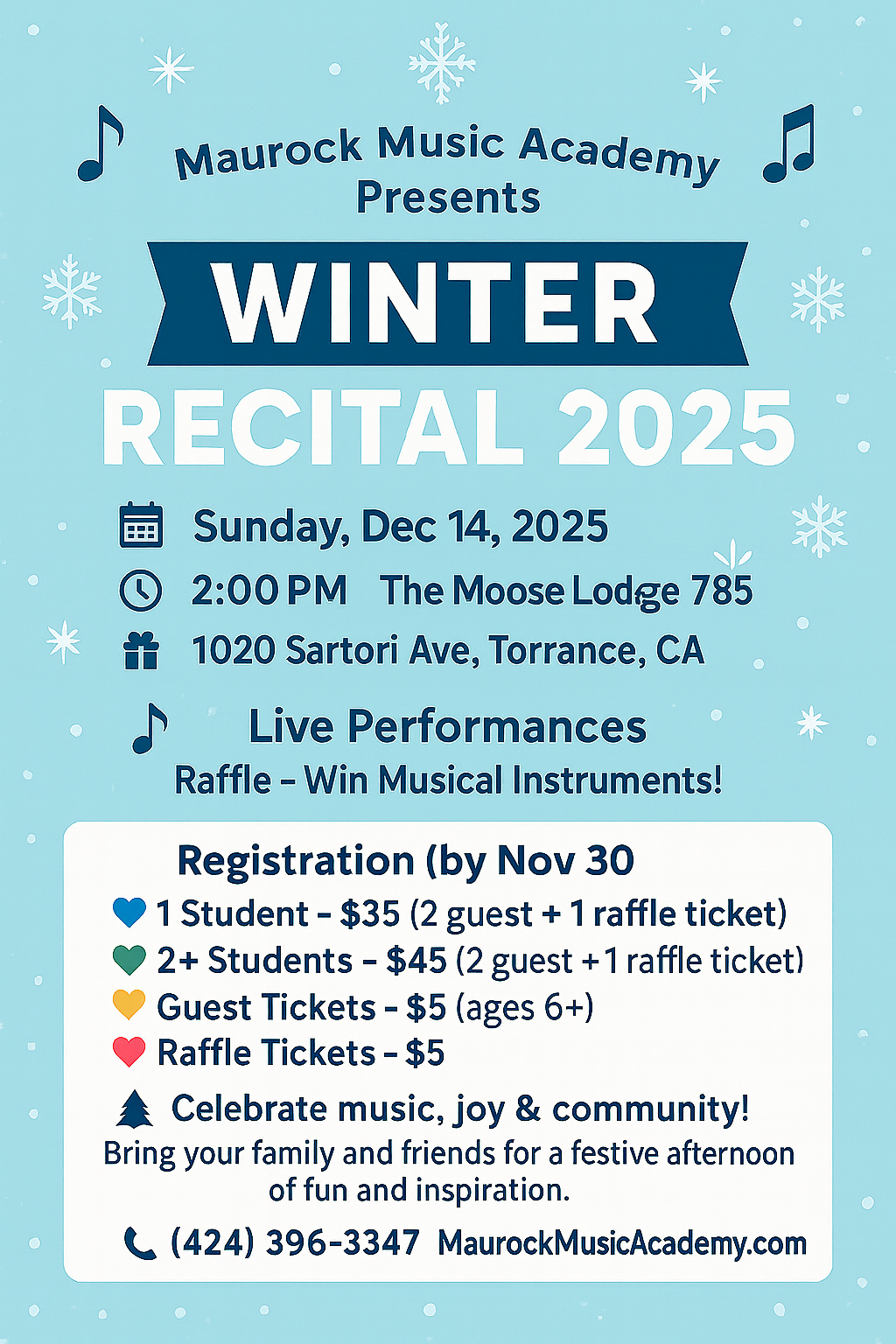 Don’t miss out on the chance to catch our Maurock Music Academy Bands live in action this Sunday, April 28th, at our Torrance location! π